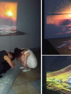 “Перемещение”. (видео, свет, зеркало) В инсталляции «бесконечное» представлено непрекращающимся движением по вертикали, которая взаимосвязано с горизонтальной плоскостью – «конечным», в котором в свою очередь, каждый элемент отражает в себе «бесконечное». Создаётся пространство в пространстве. Фрагменты текста из рассказов Марко Поло (из книги «Незримые города» И.Кальвино) путешествуют в песочном пейзаже как аллегория постижения неизведанного. Перемещенное из одной географической точки в другую текстовое сообщение, создаёт ещё одно пространство. Знаковая система создаёт и выстраивает невидимые маршруты и стены, соединяя «мир» и «здания» в […]